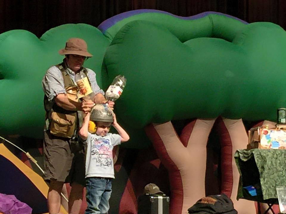 This show starts with a birthday for Dinoman’s goldfish. He just happens to turn 23 years old on the day of the performance; and, of course, he wants a dinosaur extinction theme party! Who wouldn’t? From here it’s onward and upward through the solar system and beyond!